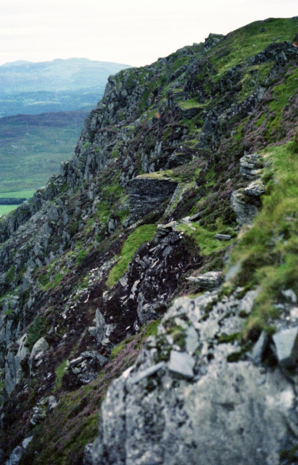Some people have suggested that the various platforms which exist on the rockface somehow were used to connect to the ropeway/incline. This view was taken from the "Viewpoint" at the end of the Gloddfa Ganol Floor 11 Mine Tour.