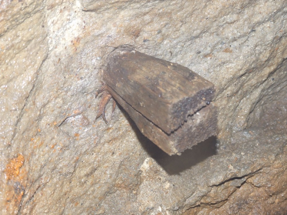 These plugs were in the footwall of the level at regular distances, perhaps every 30 yards or so. I have been told from a reliable source they are SPAD plugs, used for surveying and mapping the workings. SPAD = 'Survey point and Distance' ? Comments anyone?