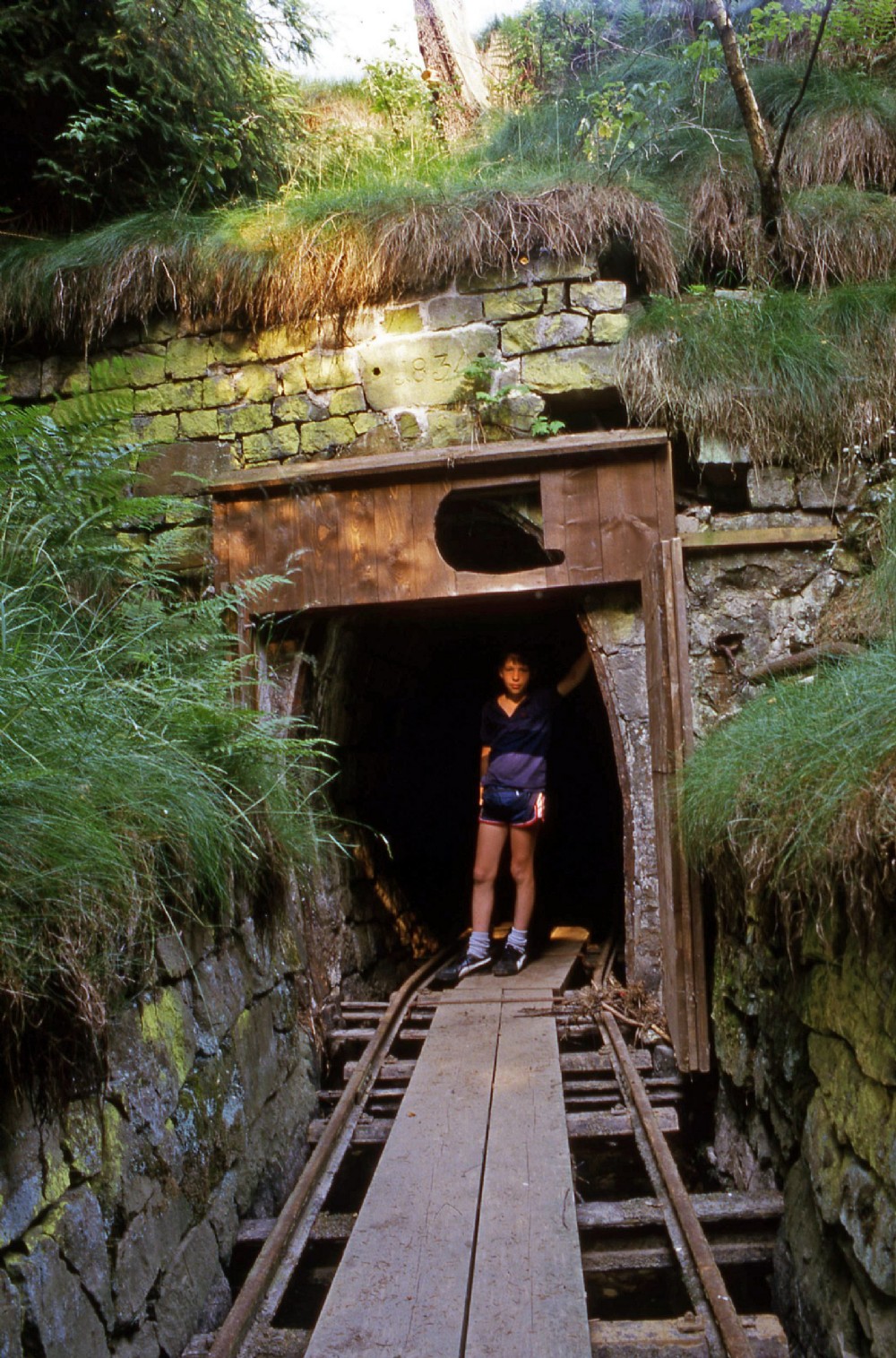 Water flows out of this adit beneath the walkway and tram rails. Lack of a cap lamp prevented what would have proved an interesting trip!