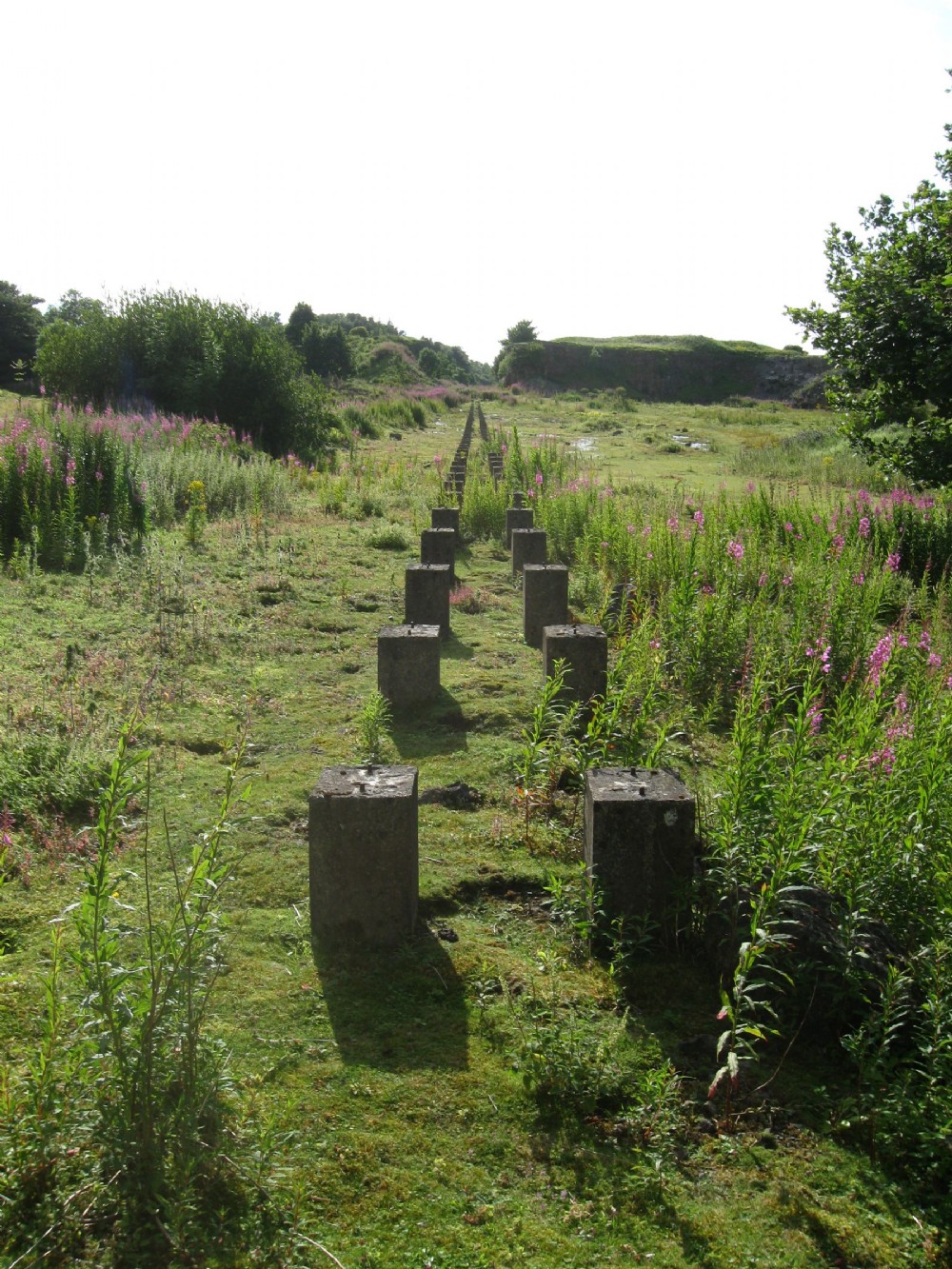 Conveyor supports leading through the quarry towards a 1000 yard long aerial ropeway connection to the Wensleydale railway line.