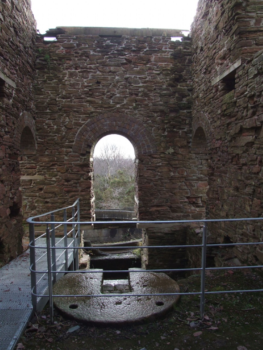 Inside the Stamps Engine House, cylinder bed stone in the foreground. 01-02-10
