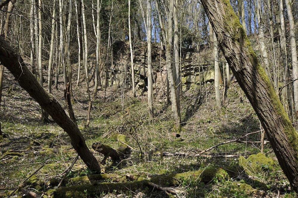 One of several stone quarries along the route of the trawmway from the mine to the screens - the stone was probably used in the retaining walls alongside the screens area.