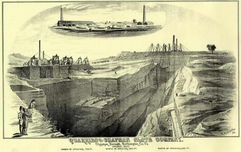 Promotional lithograph of the Chapman Slate Quarries, Northampton County, PA, circa 1875