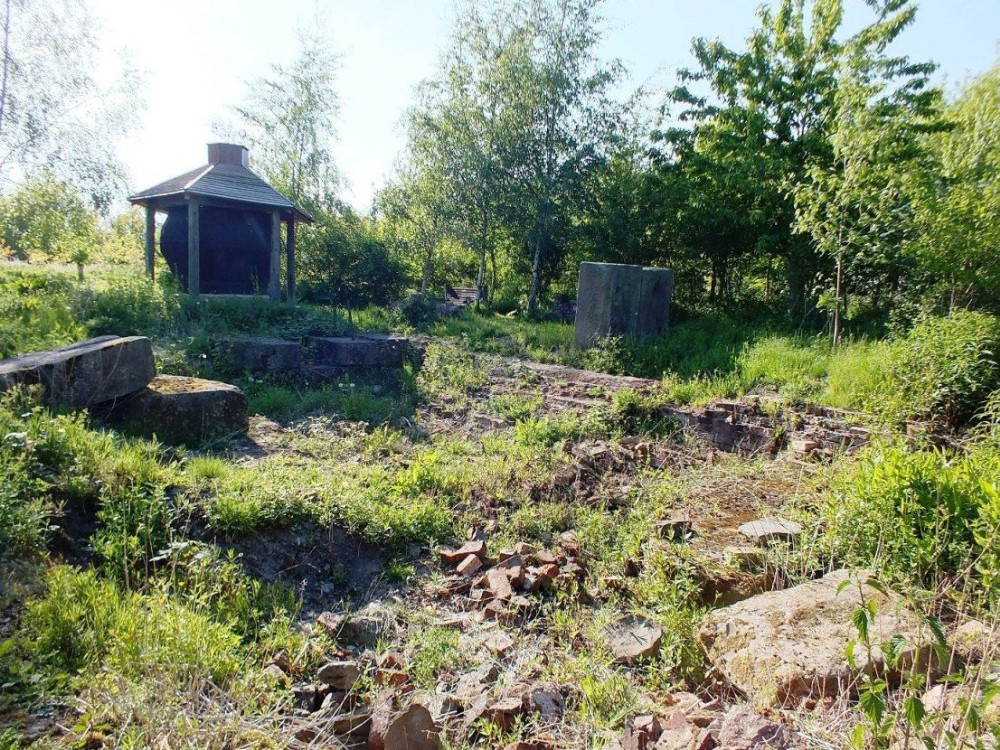 Foundations for pumping engine house looking towards shaft position with haystack boiler on top
