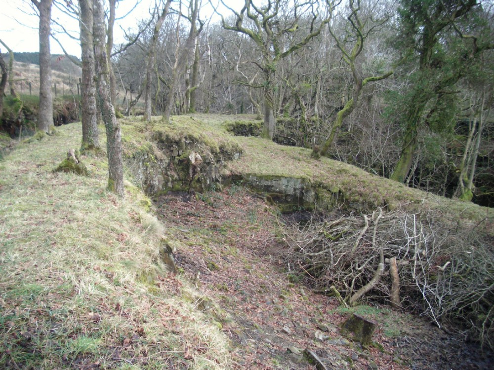 The line on the northern approach to the bridge over the Nant Llech at Henrhyd. The small quarry would have provided stone for the embankment and bridge construction.
