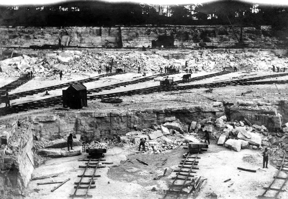 Quarry of the Western Stone Company in Joliet, Illinois, showing workings on three levels.