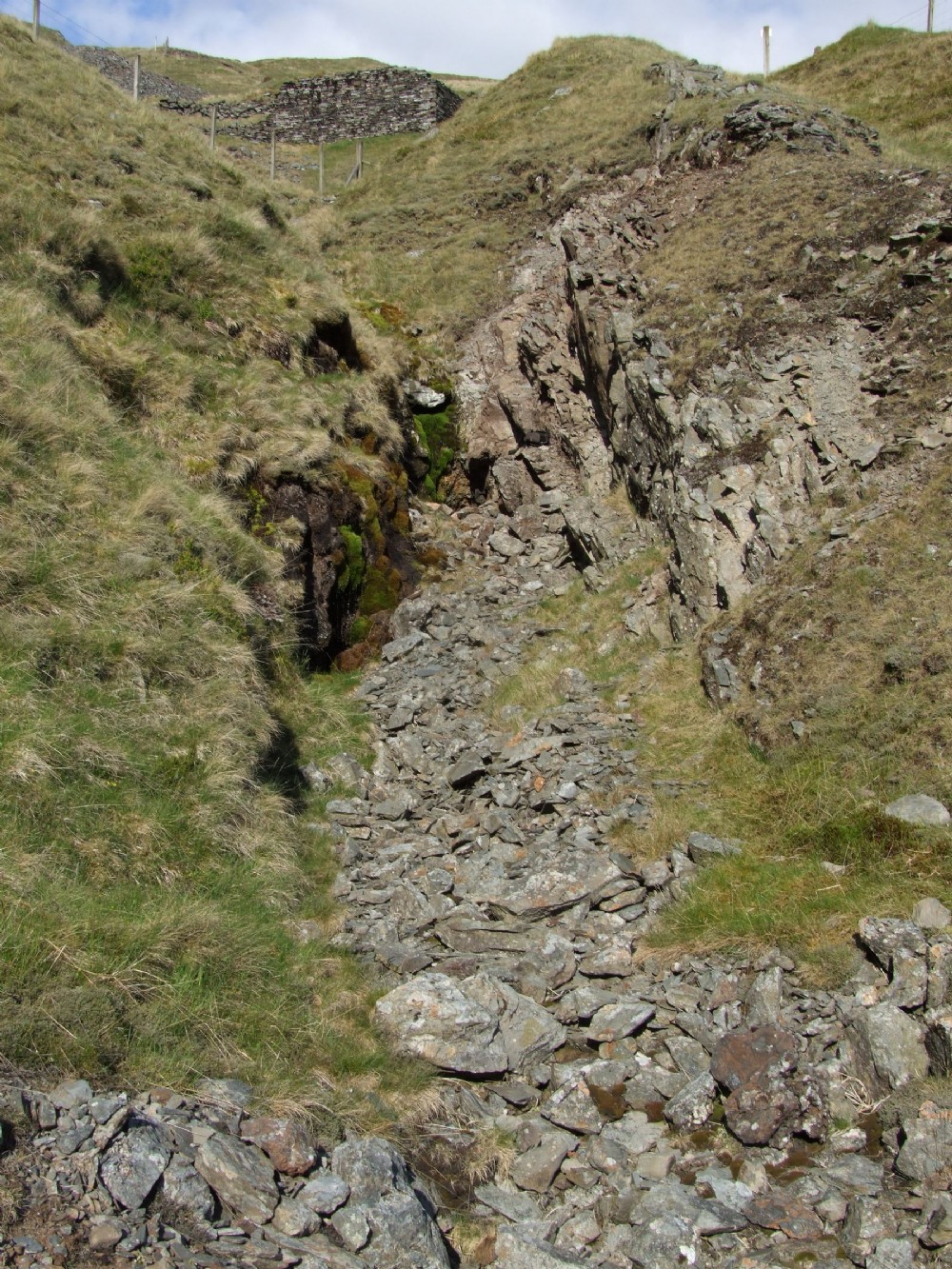Spalling rock on the right has completely filled the level which is un enterable in June 2013
