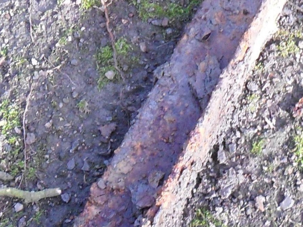 Close up of the peice of rail found adjacent to the line of the old railway running from Lane end to Smithy Brook via Emroyd.