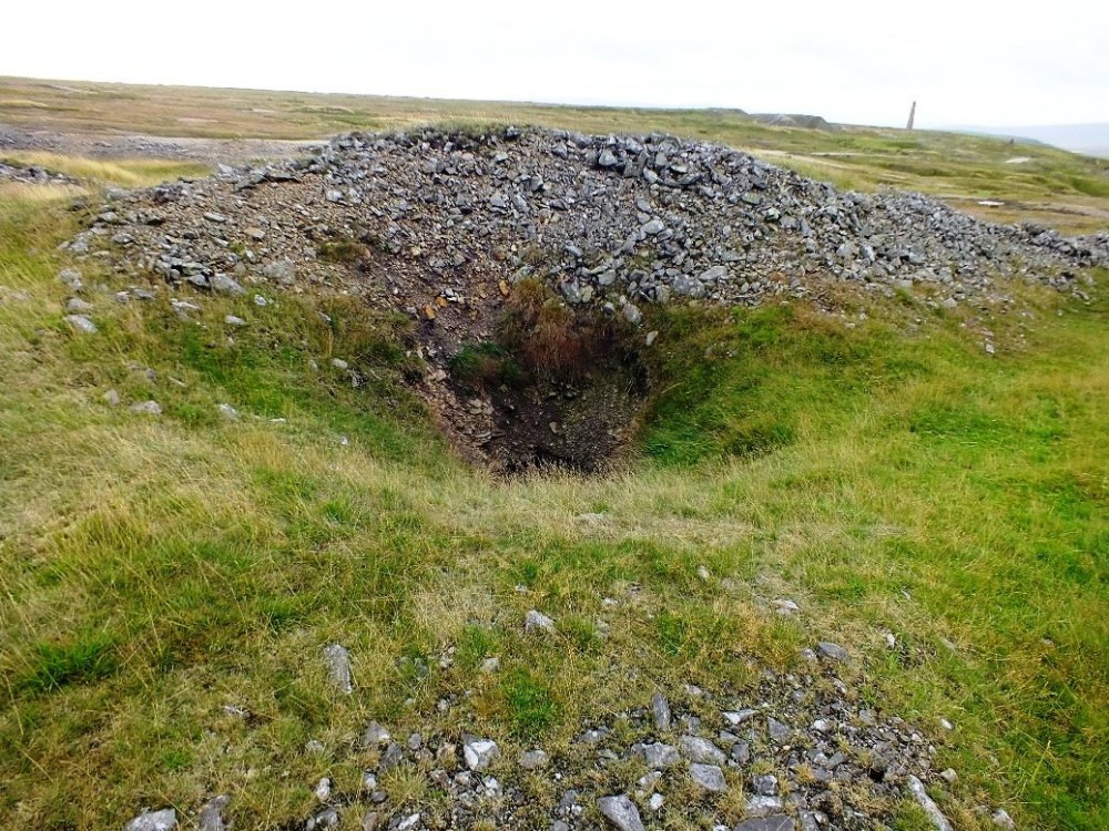 The collapse of the shaft fill appears to be fairly recent, and has taken part of the spoil mound with it