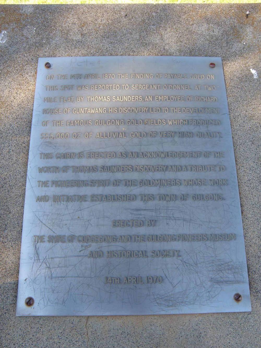 A brief summary of the discovery of gold at Gulgong is given on the plaque.