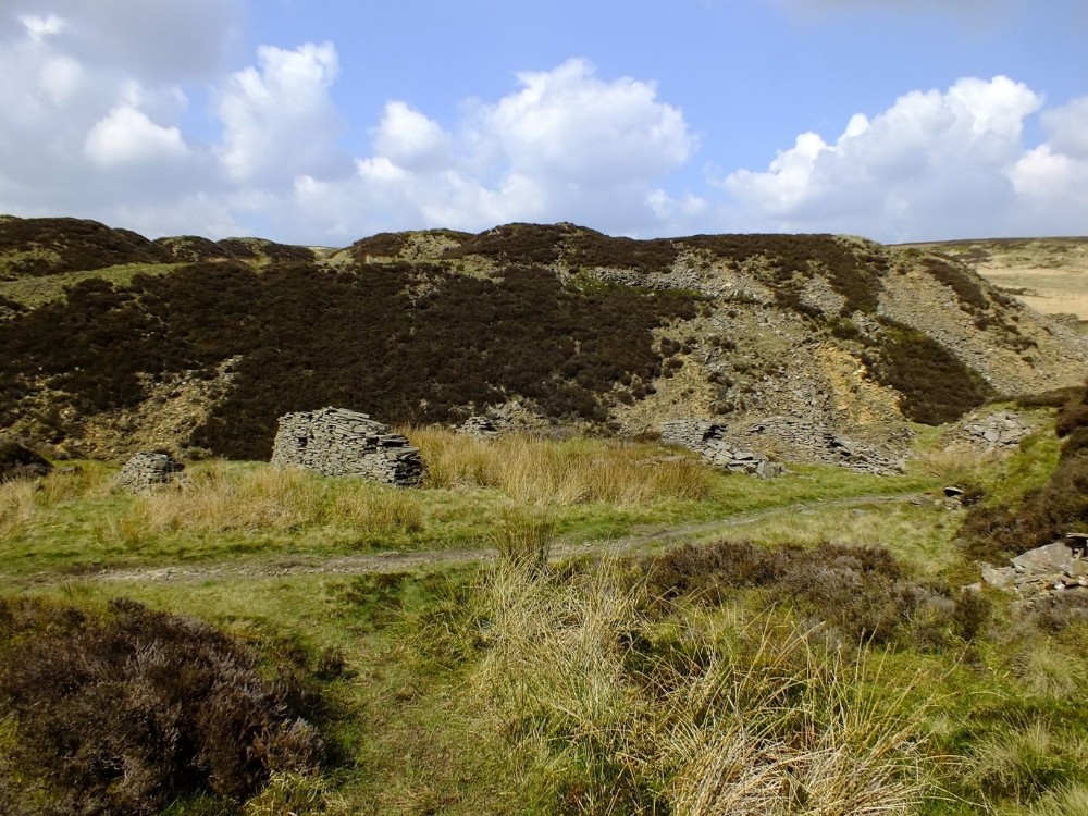 Quarry buildings remains with Dane Bower Quarries beyond on the other side of the valley