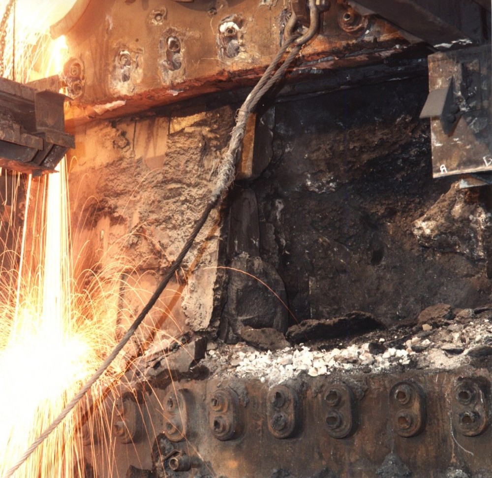 Not sure, but looks like they are cutting through the wall of the blast furnace to get access, so early in the process.