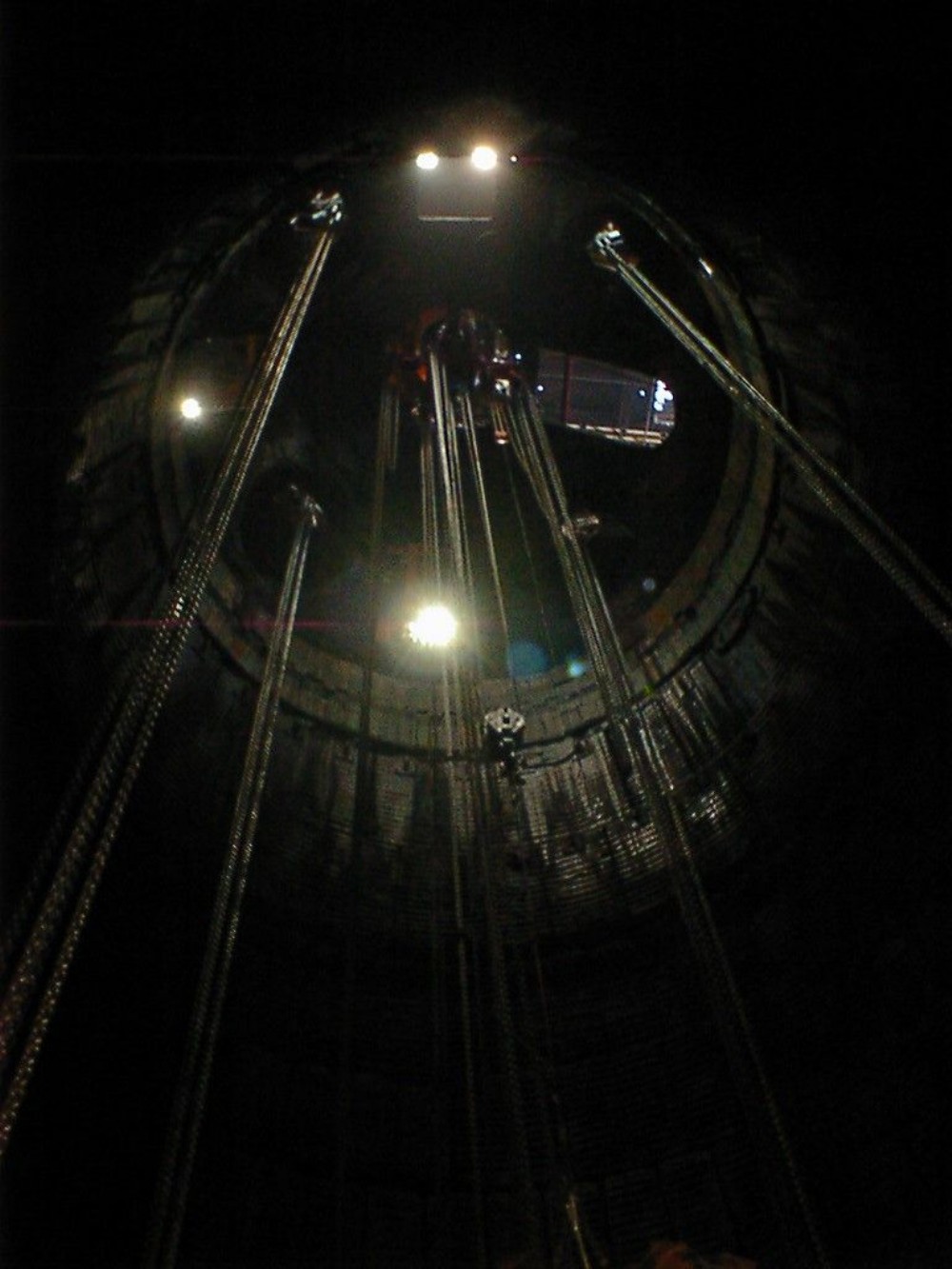I think these are the chains holding the moveable gondola, the photographer is most likely on the gondola, looking up the furnace.