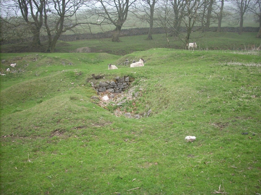 Uncertain what (if anything) these remains are for, there appears to be some retaining wall now part of track and a rectangular trench (16 April 2009)