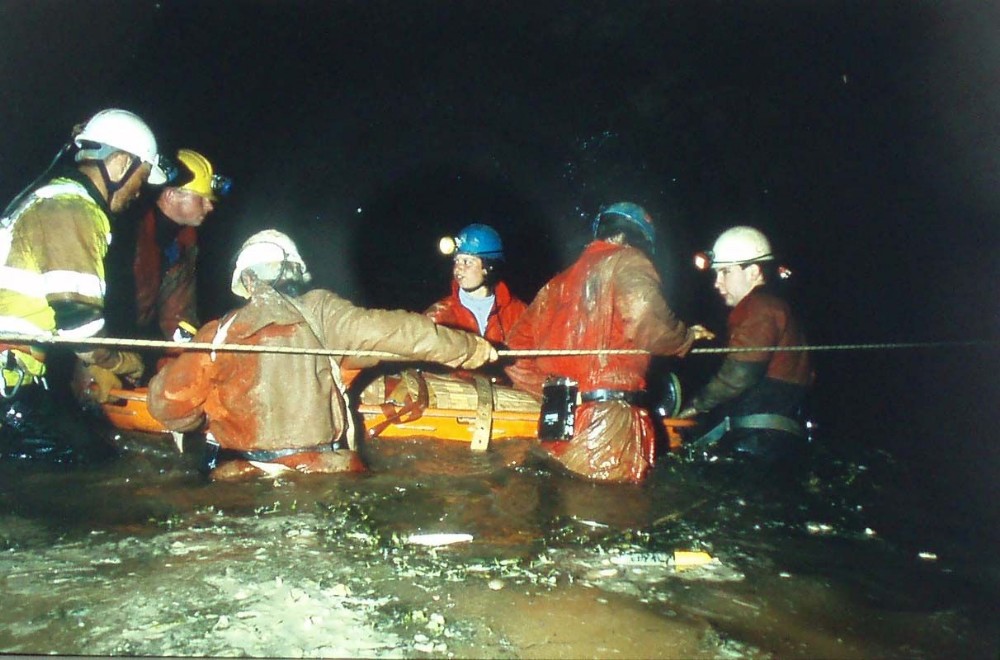 Cornwall Mine Rescue Organisation, exercise in the big sea cave that was absolutely stinking with rotting kelp on this occasion.