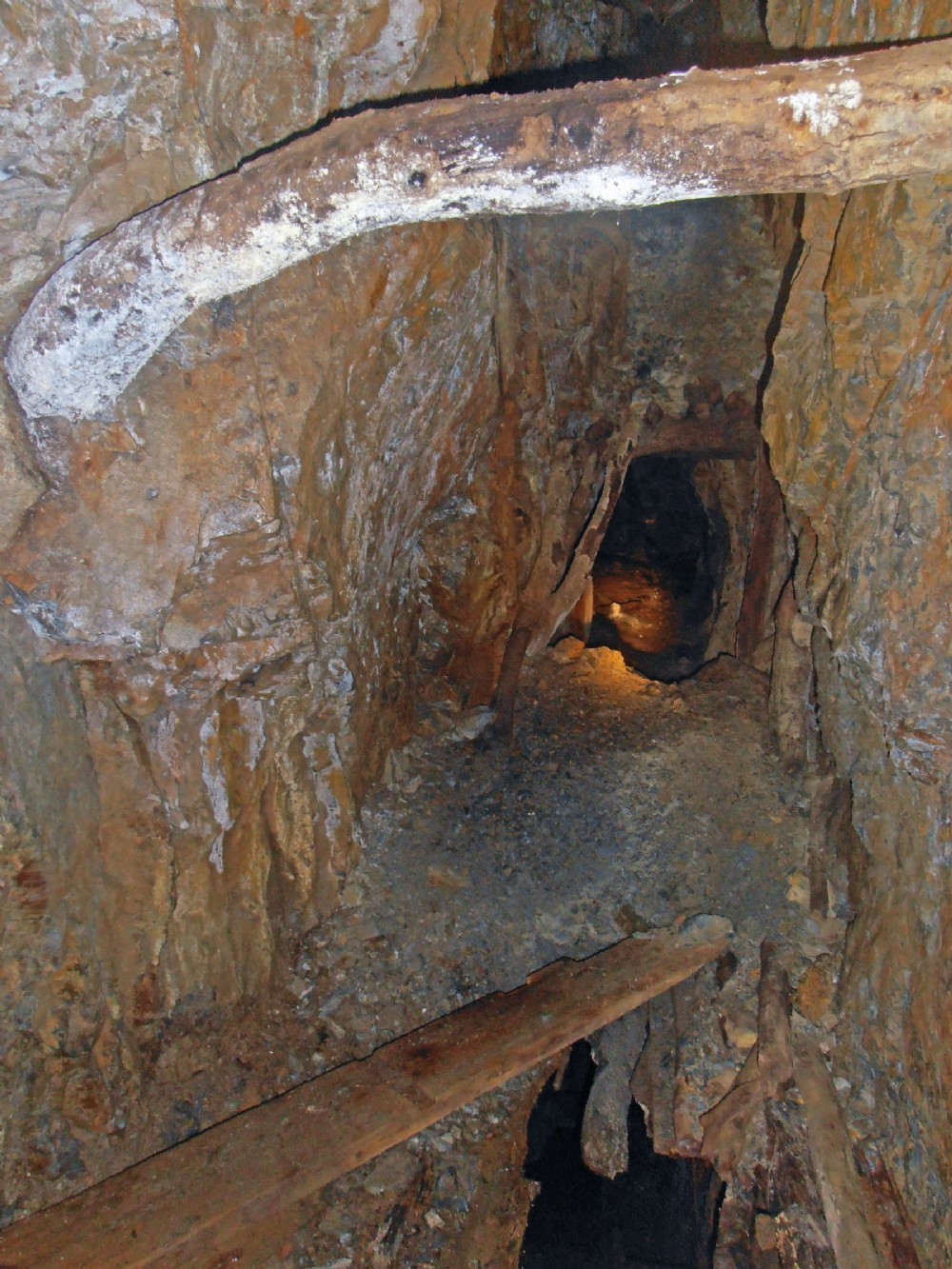 Looking to the level Eastwards along the stope. False floor in foreground.