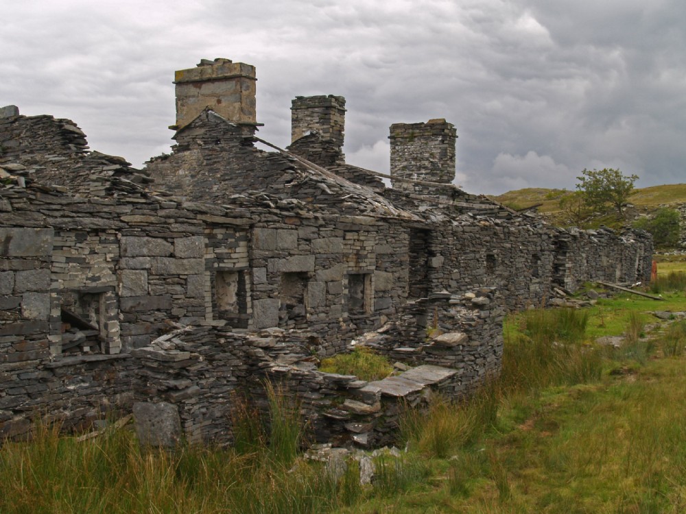 Barracks under a heavy sky. One housed a diesel generator, the removal of which seems to have involved knocking the wall down. The nearby, rusting fuel tank is presumed to be allied. September. 2007.