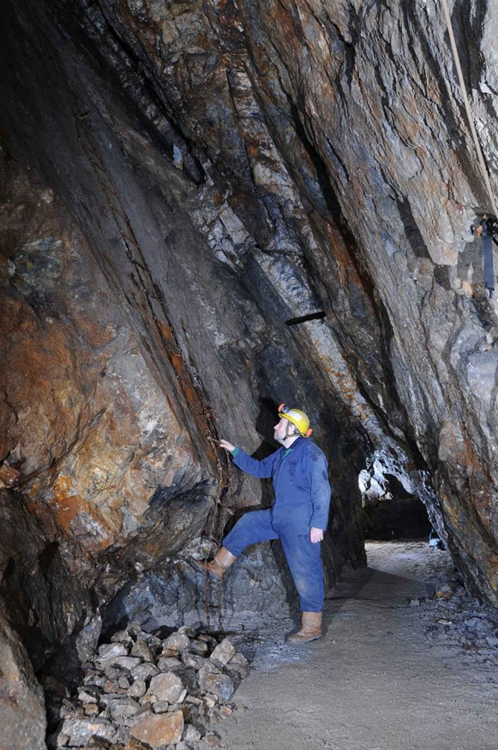 Bottom of the baryte stope, in the last area of the mine to be worked. Members of the Public are shown this stope on tours by the Shropshire Mines Trust.