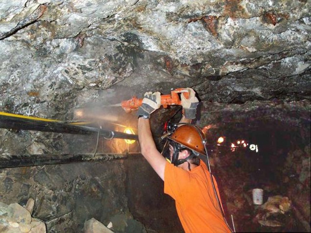 Rock drills, picks, and shovels are used to get at the mercury-contaminated sediments inside the tunnel. In spite of ventilation, high mercury vapor concentrations require that respirators be used.