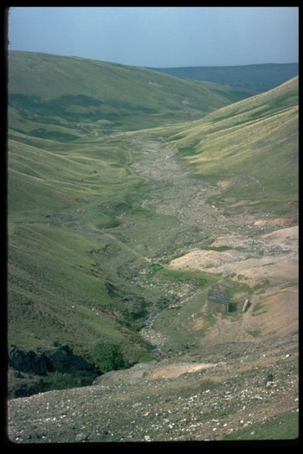 View from RG over the old spoil heaps, north along Dale Beck Valley. Photo taken about 1974.