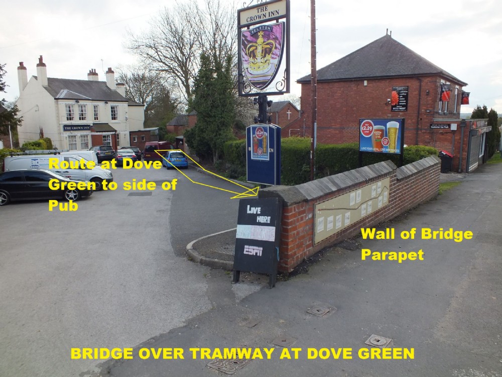 Tramway passed under the road here, it passed down the side of the pub hugging the boundary, the wall appears to be the origina;l bridge parapet.