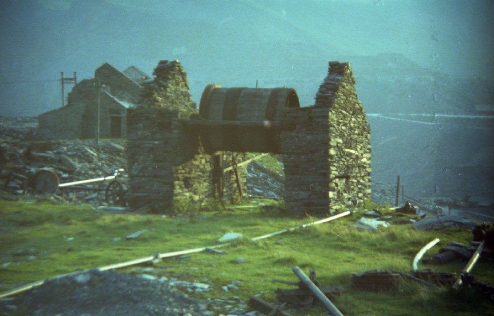 This gravity incline dates from the times before the floor 7 mill, when all slabs won had to be lowered to floors 6 and 5 for processing. Lying around it in the 1980's were the remains of the bogies of the Henderson Aerial Ropeway.