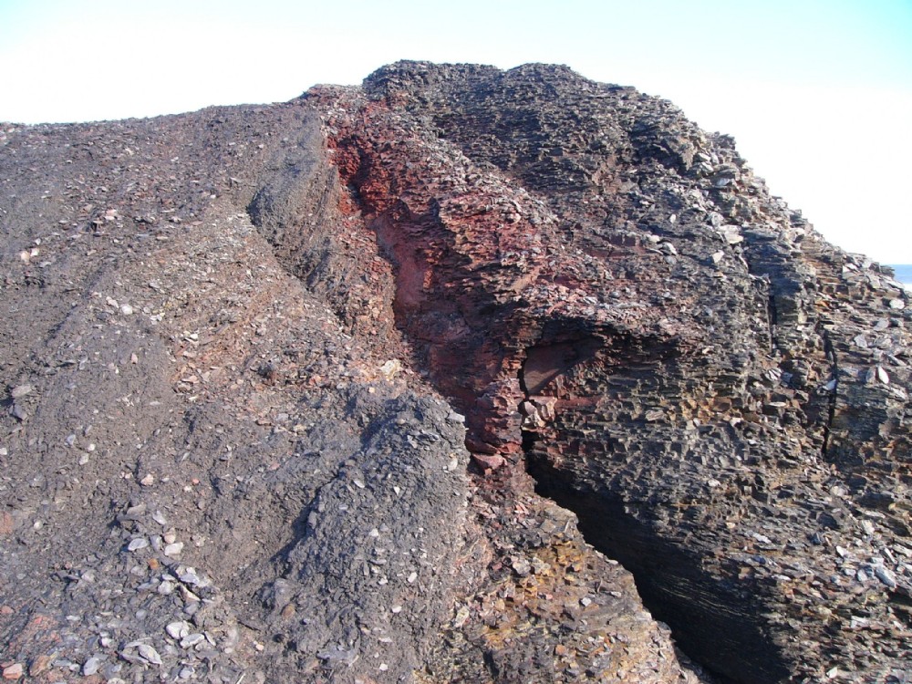 An example of the unworked shale burnt by having a calcining clamp built too close.