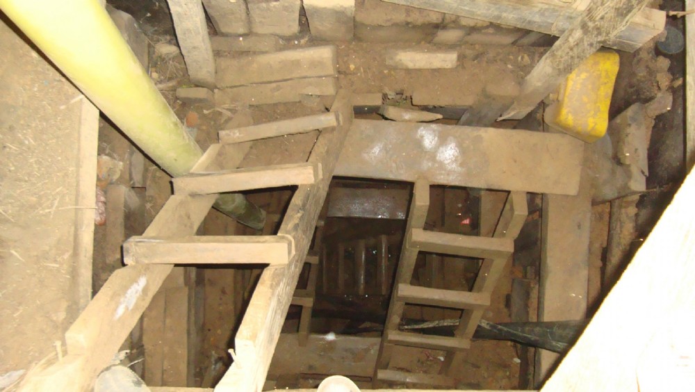 Looking down the Old San Juan Shaft, sunk in the 1950's and now reopened by artisans to explot a high grade stringer located recently