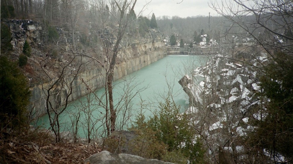 Sanders Quarry, an abandoned Salem Limestone quarry, has cliffs of up to 90 feet and water up to 30 feet.