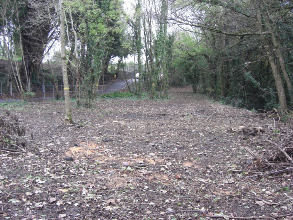 A view towards Saundersfoot Station of the recently cleared Exchange Siding. Both tracks ran parallel with the Station access road then merged into one track which ran through the cutting at the back of the Station Platform before joining the main line just beyond the end of the platform.