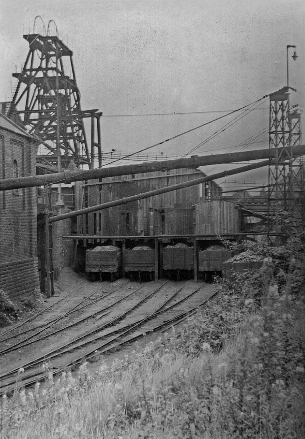 These screens served the three shafts at the Park Pits, Poynton. They were fitted with chain screens to a patent by the colliery engineer G.G. Greenwell Junior in the late 19th century. The engine house and headgear on the left are for the Lawrance Pit which was sunk c1885, whilst just visible behind is the headframe of the Oval Pit which was worked by a single cylinder vertical winder made by Thomas Murray of Chester-le-Street in 1845.