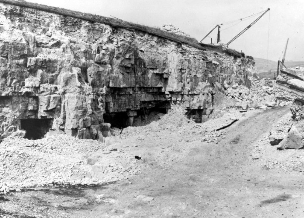 Description: Seacombe Quarry, Worth Matravers. Looking NE. Quarry section in Portland Limestone and entrances to underground workings for Portland Stone. See A4960.