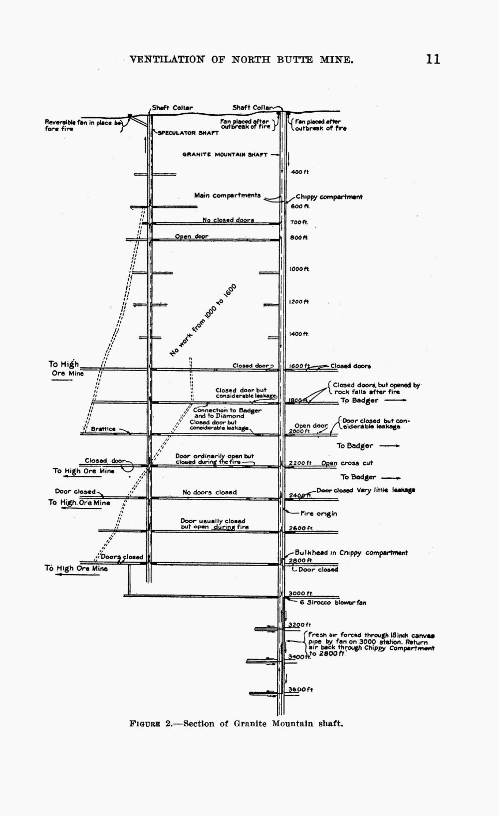 Copyright / re-use statement: Public domain.Bureau of Mines Report; Lessons from the Granite Mountain Shaft Fire, Daniel Harrington, 1922.
