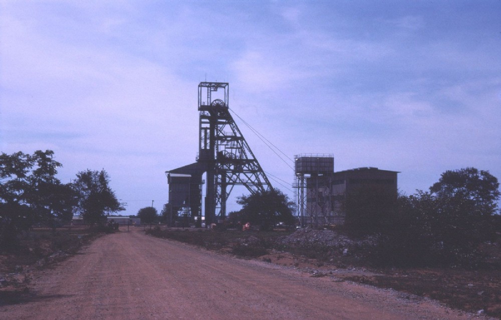 A view from the northeast along the road to the waste dump. The photo was taken ca. 1979 when driving towards the orebody had commenced from the main shaft.