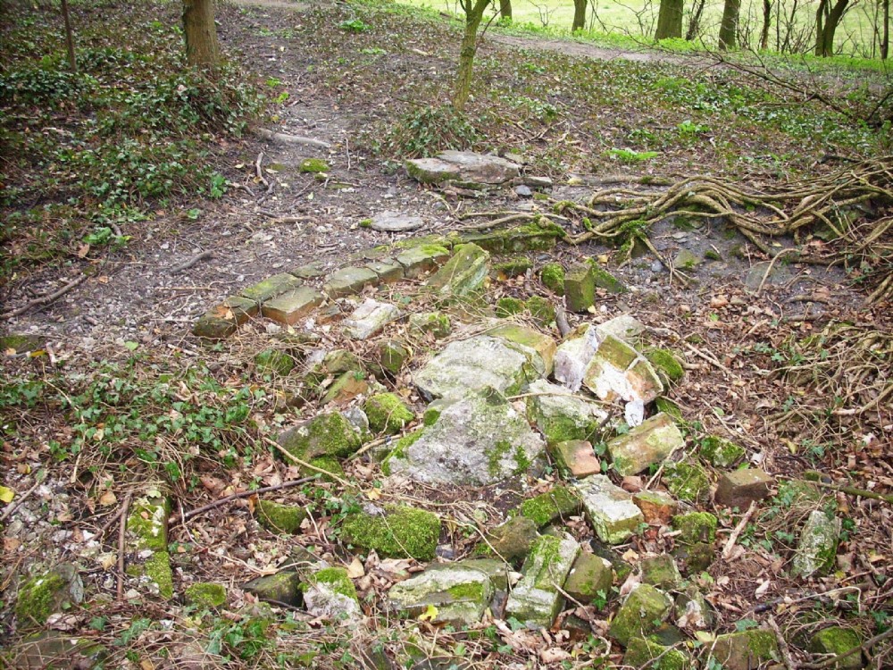 The shaft collar with curved bricks and the shaft fill and rubble have slightly subsided (Mar 2011)