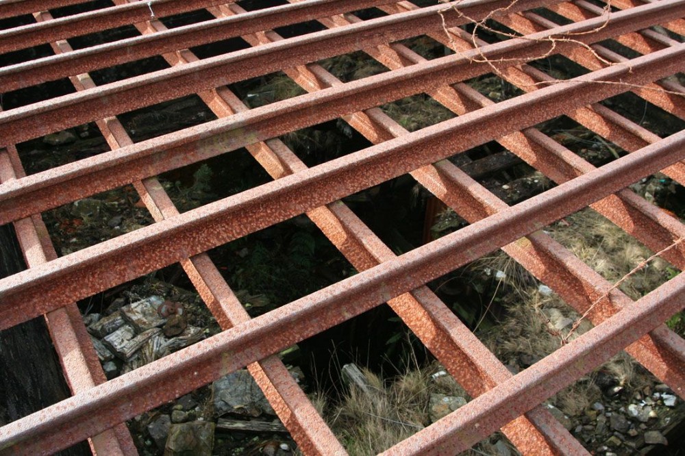 The top of the shaft is protected by a grill of old rail, the same pattern as at St Peter's Mine