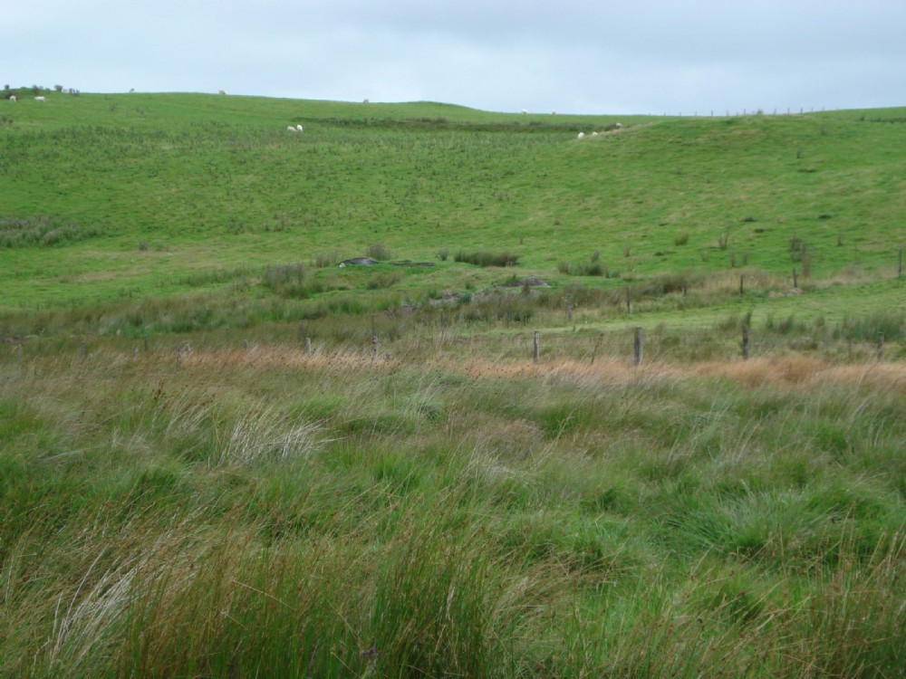 A much-denuded shaft mound at the eastern end of the mine north of the brook.