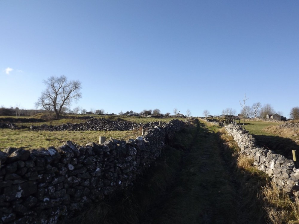 View looking west up the lane with shaft mounds on both sides of the lane (December 2012)