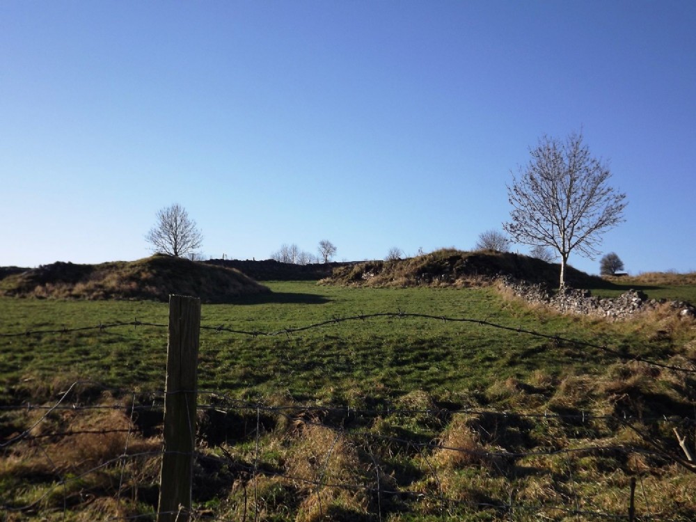 Shaft mounds forming part of Portobello Mines as viewed from the path around Dene Quarry (December 2012)