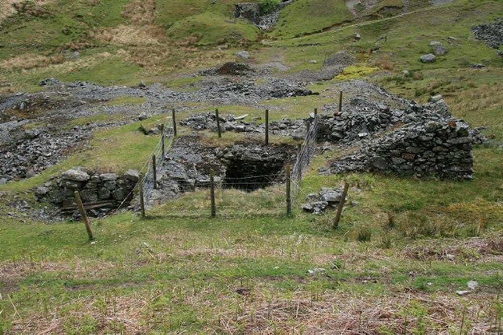 Shaft, Nant y Car South mineTaken from the old mine tramroad, this is the engine shaft on the 19th century Nant y Car South mine (copper, lead and zinc), with the balance-bob pit on the left of the rectangular shaft (which is still open) and the ruins of the winding house on the right.