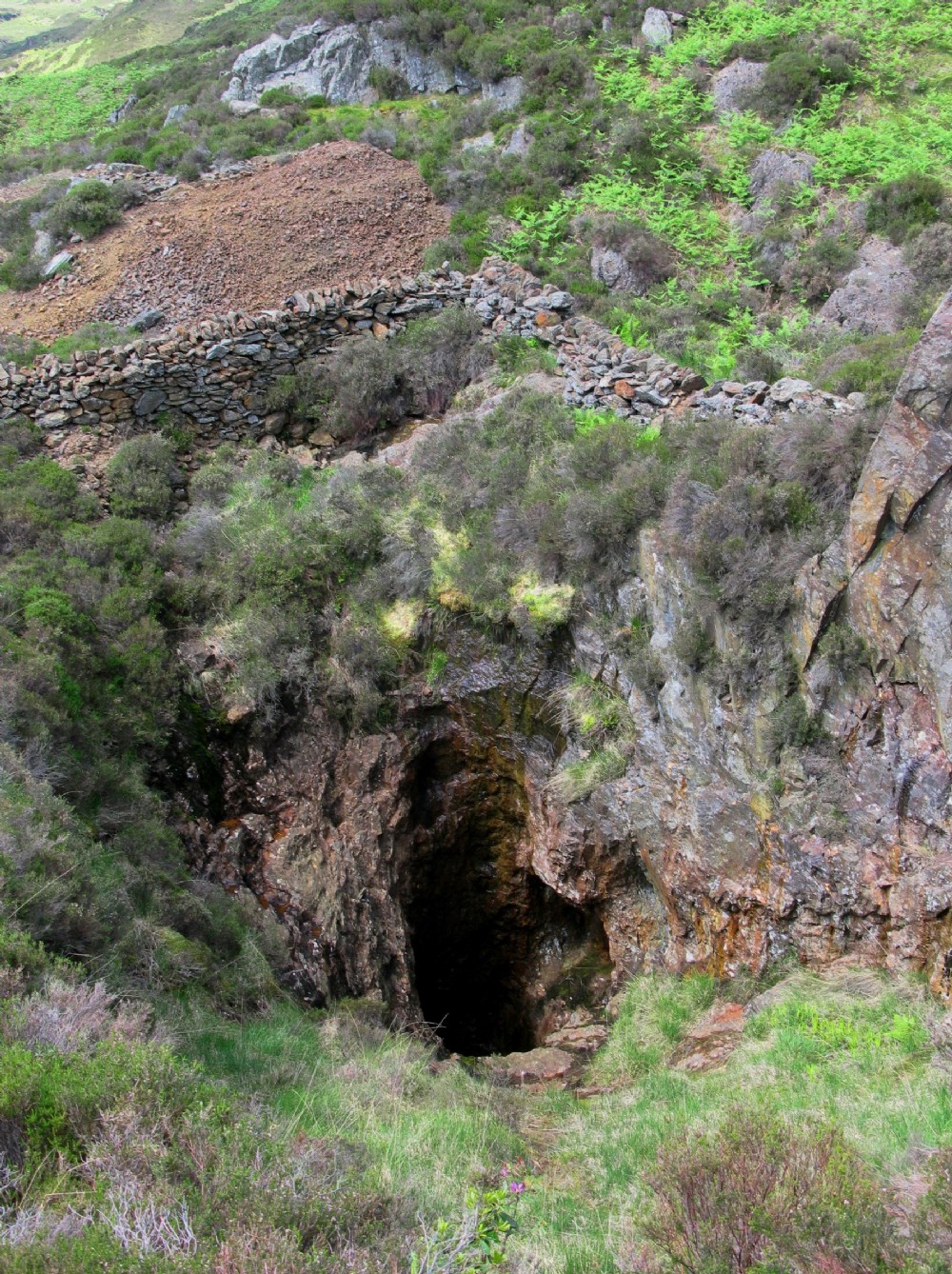 A vertical shaft waiting to be investigated ... This one, like most of the others at Hafod y Porth, is protected by a surrounding low stone wall.