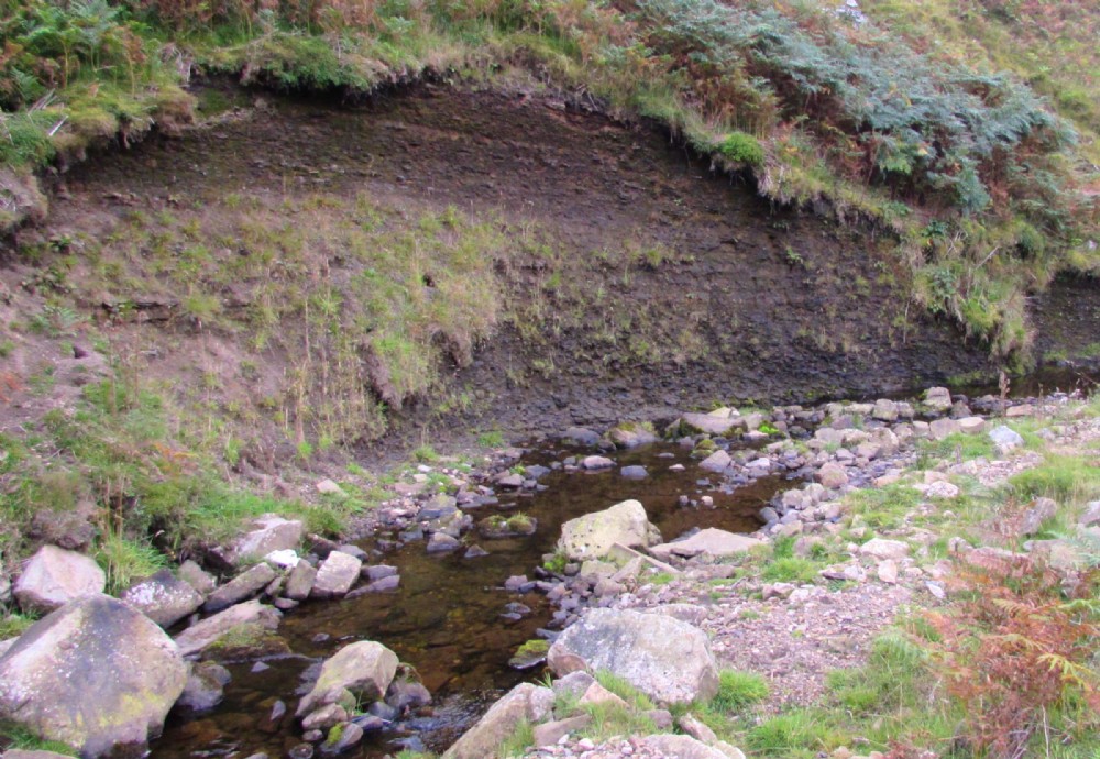The level is on the opposite bank, but this shows the arenaceous beds that the mine is dug through between the Five Yard and Middle Limestones.