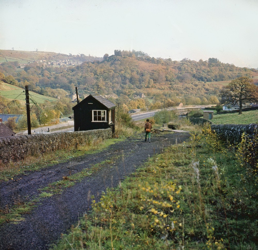 A view down to High Peak junction after the rails had been removed. The hut was for the pointsman, controlling the catch pit, into which runaway wagons would be directed.