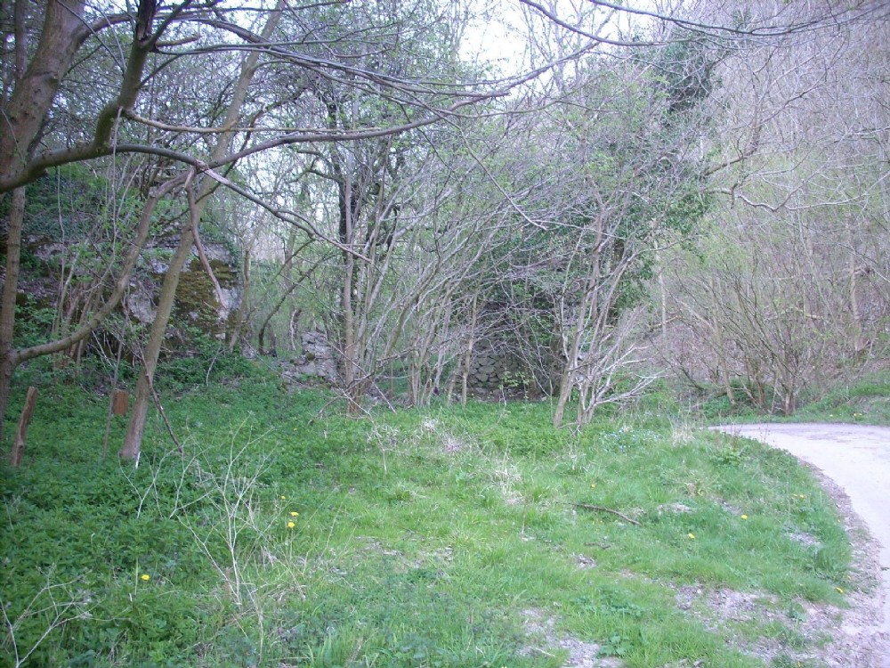 Remains of ruined coe. Opencut/Cave entrance to left of photo (24 April 2009)