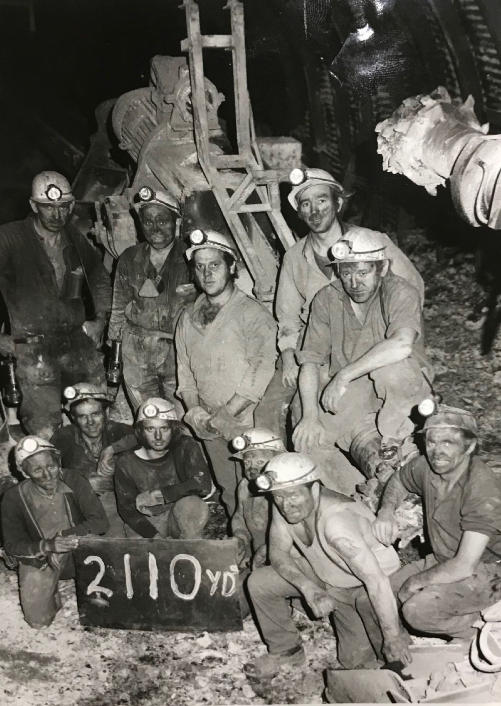 Two of the four teams of men involved in constructing the new underground roadway, pause to congratulate each other when the final breakthrough was made - September 1974