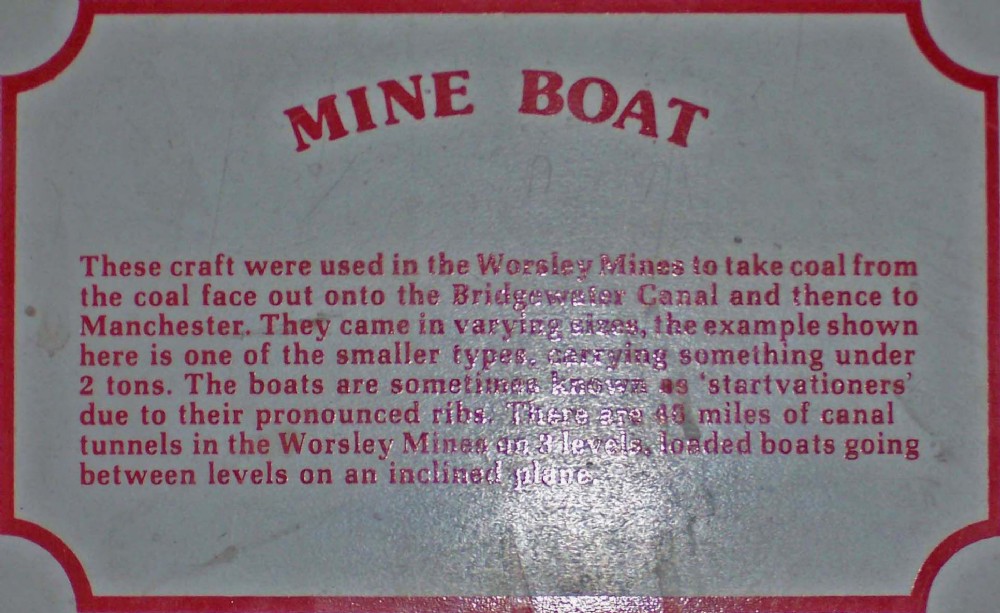 This is the short info plaque for the Worsley Mine Boat. There was also a longer write up with a couple of photos if I remember correctly.
