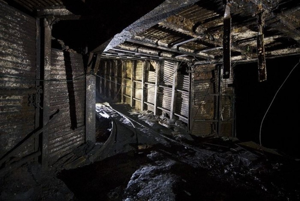 The tunnel to the left is a siding for tubs travelling into and out of the adit.