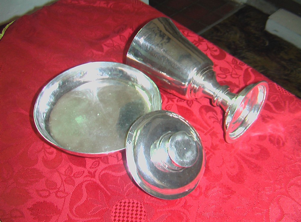 Silver chalice and altar dish.