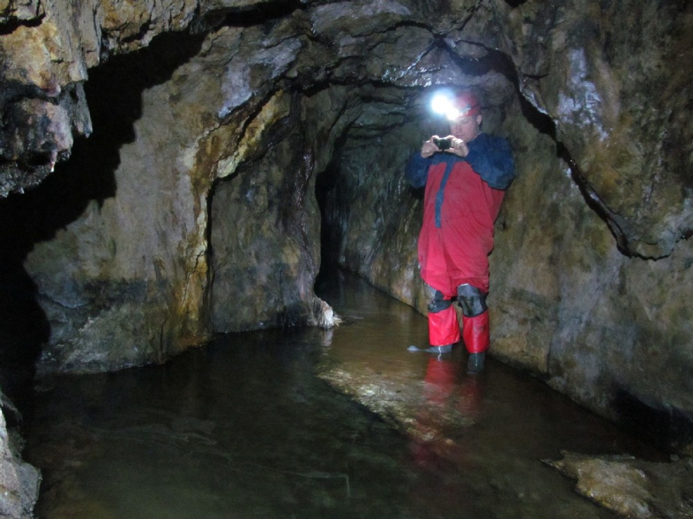 What looks like the top of an abandoned stope, but someone else described it as a silted sump.
