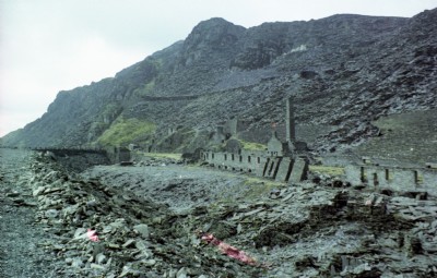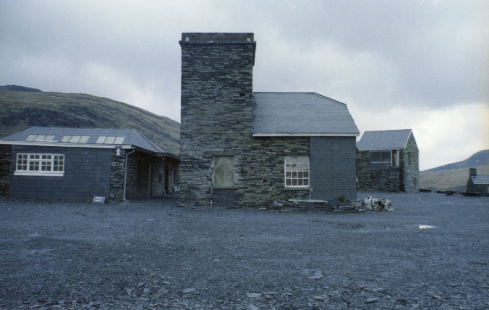 The other side of the ex-sub station, with the toilets to the left. The toilet buildings were aprt of one of the engine houses of the great Middle Quarry Mill parts of which dated from 1854. The sub-station only dated from 1906 when the Oakeley Co. ws electrified using energy supplied by the North Wales Power Co. from Cwm Dyli Power Station.